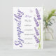Ermutigen Sie jemanden, der über den Verlust eines geliebten Menschen trauert, mit diesem einzigartigen Design mit einer großen senkrechten Überschrift, "Beileid", gefolgt von der Botschaft: "Kann Gott Ihr trauriges Herz trösten?, Ihren Schmerz und Leid lindern und Sie mit Frieden umgeben?" Hintergrund Lavendel, Schmetterling und Blume Illustration über Aquarelltextur Hintergrund. Inside kann mit Ihrer eigenen persönlichen Nachricht angepasst werden. Zurück hat diese Botschaft: "Meine Gedanken und Gebete sind bei dir. Geben Sie unten Ihren Namen an. Unten auf der Karte steht ein voll essbarer Bibelvers; "Gesegnet sind diejenigen, die trauern, denn sie werden beruhigt sein. Matthew 5:4 ."