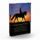 Eine liebevolle Hommage an die schöne Erinnerung an ein wunderbares Pferd. Das hat ein spirituelles Gedicht. Es soll mit dem Namen des Pferdes personalisiert sein. Ein Dressurpferd und ein Reiter mit einem schönen Sonnenuntergang und Vögeln. Eine großartige Gedenkstätte.