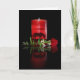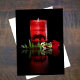 Eine einfache Gedenkkarte zum Beileid eines geliebten Pferdes. Eine Kerze, die zum Gedenken angezündet wird, eine Rose für Liebe. Ein Pferd mit Vögeln, das auf der Kugel geschmiedet ist.