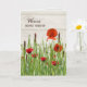 Rote Mohn und Ladybug auf einem Graskatgel für Beileid aus der Familie.