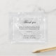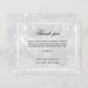 Ein schlichtes und elegantes Beileid danke Ihnen Karte. Ein silber aussehender Hintergrund, ein weißer Rahmen, Imitate Glitzer Staub und ein Schmetterling als Wasserzeichen beide vorne. Personalisieren Sie und fügen Sie Ihren Dankeschön Note. Schwarzer Text.