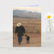 Western. Canine Foto Art Design. Individuell anpassbare Beileid- oder Beileidskarte. Cowboy und schwarzer Labrador Retriever Ranch Hund laufen zusammen an einem kalten, schrecklichen Morgen. Eine Touch Rosa am Himmel. Blaue und lila Berge in der Ferne. Geeignet für den Verlust von Familie, Freunden oder Haustieren. Von ihr Wolf Medizin.