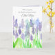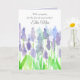 Eine Beileid-Grußkarte mit einem Strauß von Blume aus Traubenholz mit Aquarell und innen mit einem koordinierenden Schatten von weicher Lavendel. Sie können die Vorderseite der Karte mit dem Namen der speziellen Person personalisieren und die innere Nachricht bearbeiten.