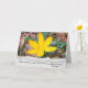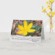 Hellgelber Krokus mit einem Schriftzüg für Beileid und abgerissenen Rand.