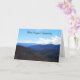 Diese schöne Beileidskarte kennzeichnet die großen rauchigen Berge auf der Außenseite mit den Wörtern "mit tiefstem Beileid." Innerhalb der Beileidskarte sind einige reizende Wörter des Beileids. Copyright Kathy Henis