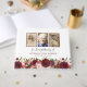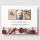 Blumenbuch des Beileids (Denkmal Gästebuch) mit 3 Fotos Ihrer Lieben, einer roten Marsala, der bordeauxroten und rot-rosa Aquarell-Blume und einer personalisierten Textvorlage mit ihrem Namen und ihren Daten.