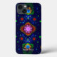 Ein mehrfarbiges Fraktal (blau, grün, rot, gelb), das an Juwelen und Edelsteine erinnert, die auf einem königsblauen Tuch angebracht sind. Passen Sie Ihren eigenen Text an.