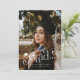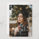 Stilvolle und moderne Abschluss-Ankündigungskarte zum Versenden an Familie und Freunde. Überlagert Typografie in einem Wirblen Schriftart, der Grad sagt. Sie können ein zweites Bild auf der Rückseite hinzufügen, und die Nachricht ist editierbar.
