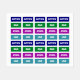 Bekleidungsbezeichnungen weiß auf mehreren Farben Etiketten