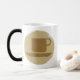 Diese Tasse ist schwarz, bis Sie Ihren Kaffee hinzufügen, dann wird das Vintage Kaffeezeichen angezeigt.