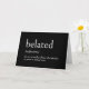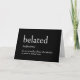 Definition of BELATED in bold white text on a black background for a belated birthday.