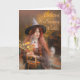 Beliebte Halloween-Wünsche, Papiergrusskarte mit digitalem Bild einer Hexe mit Herbstbouquet. Personalisieren Sie das Cover und den Insider-Text, Vers, wie Sie möchten. Art, Bild und Vers Copyright © Shoaff Ballanger Studios, 2023.
