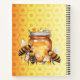 Bequem als BienenNotebook - Personalisieren Sie dieses Notebook für die geschäftigen Bienen in Ihrem Leben. Das Cover hat einen gelben bis orangefarbenen Hexagon-inspiriert Hintergrund, mit einem Aquarellbild von Bienen, die um einen Honigtopf fliegen. Auch auf der Rückseite ist ein niedliches Bienenbild zu sehen, das wiederum durch den Farbverlauf zu einem einzigartigen Notizbuch für sich selbst macht.