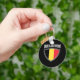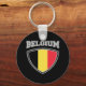 Die Nationalflagge Belgiens ist in eine Schildform eingegossen und sitzt unter dem Landesnamen.