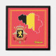 Die Nationalflagge Belgiens ist in eine Landkarte der Kontur des Landes eingegliedert. Das Wappen des Landes ist ebenfalls enthalten und beide sind auf einem roten Hintergrund mit gelben Rahmen, um das Design zu vervollständigen.