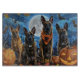 Entfesseln Sie den unheimlichen Geist mit diesem unheimlichen Halloween-Design, das eine Hundepackung unter einem dunklen, mondbeleuchteten Himmel bietet, umgeben von fliegenden Fledermäusen und glühenden Kürbissen. Ideal für diejenigen, die mit ihren wütenden Freunden eine Touch voller Furcht Liebe haben!
