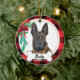 Belgisches Malinios-Ornament mit rotem Büffel-Hintergrund und Weihnachtsgarland und Bogen - Kunst wurde von mir handgemalt und als dieses bezaubernde Ornament zur Verfügung gestellt! Fügen Sie einen beliebigen Text hinzu (vorgeschlagen: "Ich ❤️ meinen Mund" oder den Namen Ihres Süßes) besuchen Sie www.curella.net für ein individuelles Portrait, Aufkleber und mehr.