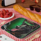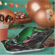 Ein wütender Freund hinter den Lenkern eines glänzenden grünen Fahrrads, das ein grünes Saint Patrick's Day Outfit trägt, das den Kopf dreht. Der Hund ist in einem festlichen Ensemble gekleidet, das mit einer grünen Bogen-Krawatte und einem passenden Oberhut versehen ist, der sich schmutzig über dem Kopf befindet. Das Outfit zeichnet sich durch die aufwändigen Entwürfe von Kleeblättern und Kobolden aus und macht deutlich, dass dieser Hund bereit ist, den St. Patrick's Day im Stil zu feiern.