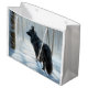 Belgischer Schafhund lässt Schnee Weihnachten Große Geschenktüte