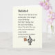 Eine lustige verspätete Geburtstagskarte von ihm, mit einem schlechten Gedicht und Illustrationen, über die anderen Dinge, die er vergessen hat. Unser Charakter, die Neige, lächelt und hält ein Buch und einen 20-Dollar-Schein.