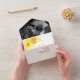 Sonnige Gelb- und Orangenschwellen auf weißem botanischem Aquarellbild glücklich nach verspäteter Hochzeit All-in-One-Einladung. Personalisieren Sie diese abnehmbare Antwort Hochzeitseinladung mit Ihren eigenen Einzelheiten der Hochzeitsfeier und fügen Sie Ihre Essensoptionen zu Ihren abnehmbaren Antworten hinzu. Die Aquarellkunst von Marigolds mit warmem, gelbem und grauem Text. Andere Farben und passende Hochzeitsartikel sind erhältlich. © Original Hand Wasserfarbe Marigold Gemälde und Design von Sarah Trett für www.mylittleedenweddings.com exklusiv auf Zazzle.