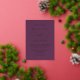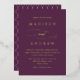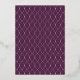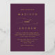 Einfache, klassische Hochzeitseinladung mit Ihren Namen und Hochzeitsdetails, die in Goldfolienschrift mit Kalligraphie-Schriftzeichen auf lila Hintergrund dargestellt sind. Die Rückseite der Goldfolie-Hochzeitseinladung zeichnet sich durch ein lila-weißes Trellis-Design aus. Das Design koordiniert mit unserer geliebten Hochzeitskollektion.