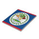 Die Belize Fahne ist ein horizontales Bicolor mit einem Emblem in der Mitte. Die verwendeten Farben in der Flagge sind blau, rot. Der Anteil der Belize-Flagge ist 2:3. Die Flagge Belizes wurde 1981 adoptiert. Die erste Verwendung der aktuellen Flaggengestaltung erfolgte 1981. Die letzte Änderung am aktuellen Belize-Flaggendesign erfolgte 1981.