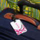 Unterscheiden Sie Ihre Rucksäcke, Kleidersäcke, tragenden Hüllen u. Koffer mit diesem hübschen Gepäckumbau, der wirbelnde Reben der Fuchsie und Kirschblüten auf einem weißen Hintergrund kennzeichnet. Verwenden Sie BESONDERS ANFERTIGEN ES Knopf, um Text zu addieren. Kommt in 12 Farben. Einige zusammenpassende Produkte verfügbar. "Bella" durch Cheryl Daniels © 2014. Für Fragen oder Gewohnheitsanträge Kontakt: cheryl@cheryldanielsart.com.