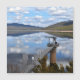 Ein atemberaubender Blick auf den Bellfield-See in den Grampiern, Victoria, Australien. Das ruhige Wasser bildet einen wunderschönen Spiegel, der die Wolken und die umliegenden Berge in atemberaubender Schönheit wiederspiegelt. Die Struktur im Vordergrund ist Teil des Auslaufturms und des Zufahrtsweges. Es dient der Kontrolle des Wasserflusses aus dem Reservoir in das Verteilungssystem, der Überwachung des Wasserspiegels und der Qualität und bietet den Betreibern einen sicheren Wartungspunkt. Dieses friedliche Landschaftsfoto zeichnet die Stille und Ruhe der australischen Wildnis aus und eignet sich hervorragend für Wandkunst, Zuhause-Dekor oder Naturliebhaber.