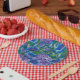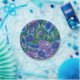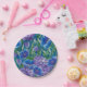 Bellisima Wiederholung Muster florale Papierplatte - von einer Original Acrylmalerei des Künstlers Jodi L. Lopez. Lila Hydrangeas und blaue Mohn vor blauem Hintergrund. Passend zu den Party-Vorräten wie Packpapier und Servietten in der gleichen Mustersammlung.