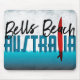 Bells Beach Australia Surfdesign. Ein rotes Surfbrett mit blauem und türkisfarbenem Text - Typografie Surfer Thema.