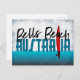 Bells Beach Australia Surfdesign. Ein rotes Surfbrett mit blauem und türkisfarbenem Text - Typografie Surfer Thema.
