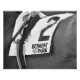 Das Schwarz-weiße Foto der kalten "Winterspiele im schönen Belmont Park" schmückt das idyllische Schwarz-Weiß-Sattelekloth #2 mit dem berühmten Logo des Belmont Parks. Auf diesem gewaltigen Gürtelmoment sind Jockeysattel und Eisen aufgestellt, bevor die Fahrer anrufen. Fleetphoto
