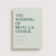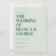 Die Belmont-Designkarte zeigt die Namen der Ehepaare in einem großen, fetten Schriftart und schafft so ein visuelles Herzstück, das Bände spricht. Wie Sie oben und unten sehen, werden die wesentlichen Details der Feier in einem kleinen, klassischen Serif-Schriftart anmutig präsentiert. Die Rückseite ist eine Leinwand für ein weiteres wunderschönes Foto des Ehepaares, das einen Einblick in ihre gemeinsame Reise ermöglicht. Eine personalisierte Botschaft, die sorgfältig von den Paaren erstellt wurde, fügt eine warme und intime Touch hinzu und lädt Liebende ein, sich an der Feier ihrer Gewerkschaft zu beteiligen.