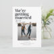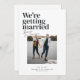 Die Belmont rett-the-date-Karte zeigt ein vertikales Foto, das das Wesen der Liebe des Paares erfasst und so ein visuelles, Bände sprechendes Kernstück schafft. In der links oberen Ecke stiehlt die kühne Erklärung "Wir heiraten" das Rampenlicht. Unmittelbar darunter sind die Namen des Paares in handgeschriebenem Kalligraphie-Stil verfasst, der eine Touch von persönlichem Charme und Eleganz schafft. Wenn man in die untere Mitte blickt, werden die wesentlichen Details der Feier anmutig in einem kleinen, klassischen Serif-Schriftart präsentiert. Datum, Uhrzeit und Veranstaltungsort werden nahtlos zusammengeführt und versprechen einen Tag voller Freude und gepflegter Momente. Die Rückseite ist eine Leinwand für ein weiteres wunderschönes Foto des Ehepaares, das einen Einblick in ihre gemeinsame Reise ermöglicht. Eine personalisierte Botschaft, die sorgfältig von den Paaren erstellt wurde, fügt eine warme und intime Touch hinzu und lädt Liebende ein, sich an der Feier ihrer Gewerkschaft zu beteiligen.