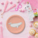 Beluga Whale Illustration Gold Dots Coral Pappteller