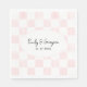 Verleihen Sie Hochzeiten und anderen besonderen Anlässen mit diesen Servietten eine persönliche Note. Sie sind bereit, mit Ihren Namen und Ihrem Hochzeitsdatum (oder einem beliebigen Text) personalisiert zu werden und haben einen rosa-weißen Schachbrett-Hintergrund. Bemalte pastellrosa Felder wechseln sich mit einfachen weißen Feldern ab.