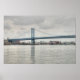 Das ist die Ben Franklin Bridge, die sich den Städten Philadelphia, Pennsylvania und Camden, New Jersey, anschließt. Seine Reflexion kann man im Delaware-Fluss sehen. Dieses Foto wurde vom Camden-Ufer aufgenommen und auf Philly gerichtet.