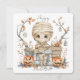 Benchbound Boo - Mummy in the Lantern Grove Eine mit Augen Mumie, die in zarten Beige-Bandagen verpackt ist, sitzt auf einer Steinbank, umgeben von lächelnden Jack-o’-Laternen, blätternden Bäumen und hängenden Laternen. Eine Geisterdekoration schwimmt in der Nähe, während verpackte Geschenkboxen, verstreute Herbstblätter und ein zartes Spinnennetz die Szene vervollständigen. Die gedämpfte Palette an Orangen, Braun und Grauen verleiht diesem skurrilen Halloween-Moment gemütlichen Charme und vermischt köstliche Süße mit saisonaler Gelassenheit.