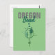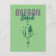 Die moderne Wortkunst zeigt Oregon in erschüttertem grauem Schriftart mit Bend in einem modernen Aqua-Script-Schriftart mit geometrischen Bäumen und Planeten Logo-Stil Grafik auf grünem Hintergrund