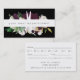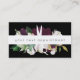 Moderne elegante, weiße und dunkle Pflaumenblumen mit grünem Blattwerk, weiße Salonschere, Logo-Design, Terminkarten. Textfarbe und Schriftart können angepasst werden. Berufliche Designvorlage mit mehreren Zeilen für Ihre Informationen. Die Karte enthält Zeilen für Termininformationen, einschließlich Name, Wochentag, Datum und Uhrzeit des Karos.
