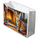 Bengal Cat Fireplace with Christmas Lights Große Geschenktüte