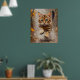 This vibrant artwork captures the raw energy and elegance of a Bengal cat mid-leap. With its striped coat, piercing green eyes, and extended paws, the feline bursts forward through a swirl of earthy tones and expressive brushstrokes. The abstract background enhances the sense of motion, making this piece a celebration of feline agility and wild spirit. Perfect for cat lovers, modern art collectors, or anyone who appreciates dynamic animal portraits.
