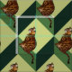 Eine bengalische Katze des Cartoon sitzt auf einem Hintergrund der grünen Quadrate. Die verschiedenen Schatten geben eine Illusion 3D eines TreppenTreppeneffekts. Keep Schauen und er scheinen als ob die Bildverschiebungen. Select fertigen besonders an, um mit den Effekten neu zu ordnen, zu kippen und zu spielen.