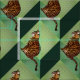Eine Bengalische Cartoon sitzt auf einem Hintergrund von grünen Quadraten. Die verschiedenen Farbtöne verleihen dem Ganzen eine 3D-Illusion eines Treppeneffekts. Behalt suchen und es wird so erscheinen, als ob sich das Bild verschiebt. Wählen Sie Anpassen, um die Effekte neu zu ordnen, zu kippen und abzuspielen.