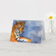 Aquarellmalerei eines orangen bengalischen Tigers in schwarzer Tinte auf einem blauen Hintergrund. Personalisieren Sie die bengalischen Tigergrüßkarten oder -Mitteilungskarten mit Ihrem eigenen Text oder Ihren eigenen Bildern mithilfe der Option Anpassen Sie es.