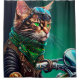 Ein wütender Freund hinter den Lenkern eines glänzenden grünen Fahrrads, das ein grünes Saint Patrick's Day Outfit trägt, das den Kopf dreht. Die Katze ist in einem festlichen Ensemble gekleidet, komplett mit einer grünen Bogen-Krawatte und einem passenden Oberhut, der sich schmutzig auf den Kopf setzt. Das Outfit zeichnet sich durch die aufwändigen Entwürfe von Kleeblättern und Kobolden aus und macht deutlich, dass diese Katzenkatze bereit ist, den St. Patrick's Day im Stil zu feiern.
