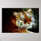 Ein chinesischer Bengalischer Tiger mit weißer Elektrizität, der aus seiner Haut strahlt, dieser Tiger ist orange und schwarz Streifen seine Zähne, die auf dich zeigen und seine Augen weit offen