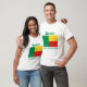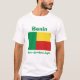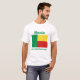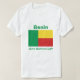 Ein editable Titel und ein Slogan begleitet das grüne vertikale Band auf der linken Seite der gelben und roten horizontalen Bänder der beninischen Flagge auf der Front dieses T - Shirt. Die Rückseite zeigt eine ausführliche Karte von Benin an.