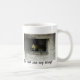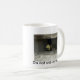 Eine Tasse zeigt eine braune Maschinenpistole aus dem zweiten Weltkrieg in einer Betonsäulenbox